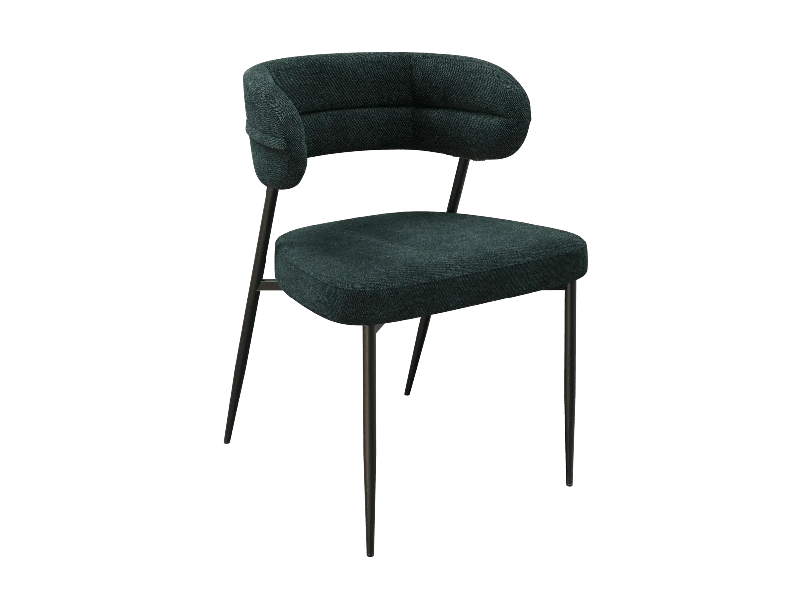 Fabriqué en 100% polyester, son revêtement se distingue par une excellente résistance au boulochage et aux frottements même après une utilisation prolongée. Son piétement minimaliste en acier laqué noir mat complète son allure contemporaine.