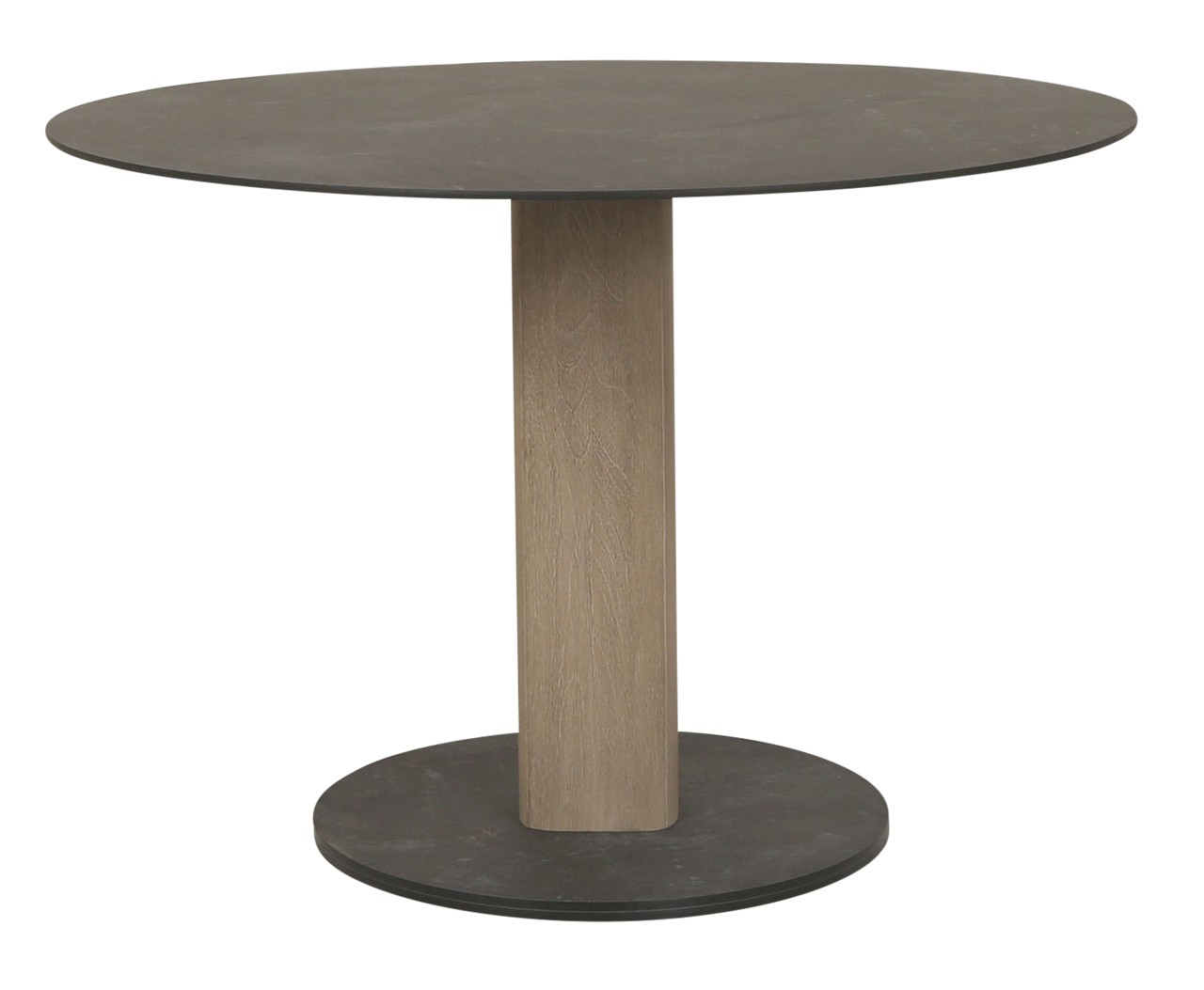 Table de repas COPENHAGUE avec piétement central en teck finition Duratek®et plateau céramique coloris ciment blanc , permettant d'optimiser les places assises. Avec son design élégant et intemporel, cette table trouvera facilement sa place aussi bien à l'intérieur qu'à l'extérieur de la maison.