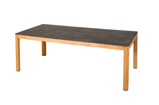 Table rectangle, piètement en teck avec plateau plein en HPL ardoise
