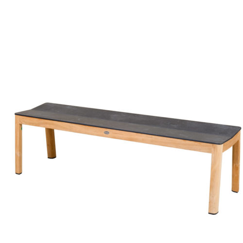 Banc long, structure en teck, assises lames larges HPL ardoise
