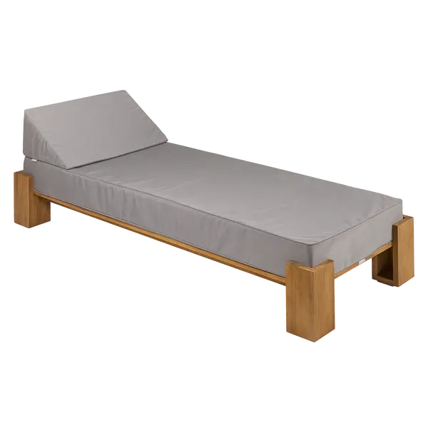 Pour renforcer le côté cosy du lit de soleil Livadi, le studio interne de Vlaemynck a opté pour une structure en teck massif. Résolument contemporains, les 4 pieds carrés s'habillent d'une robe ambrée qui apporte beaucoup de chaleur à l'ensemble. Au-delà de son esthétique soignée, le teck massif a de nombreuses autres vertus. Au premier rang desquelles une forte résistance aux aléas météorologiques. L’extérieur de votre établissement risque bien d'attirer les foules...