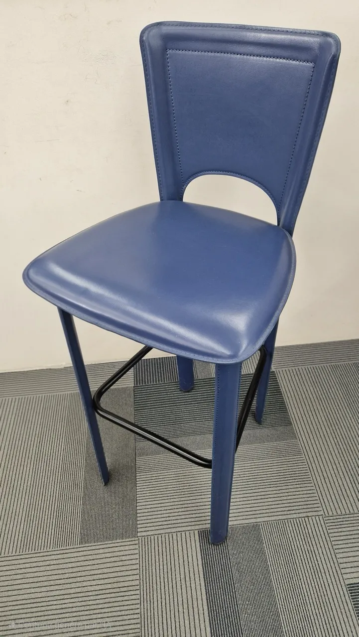 Structure métallique gainée cuir et assise en cuir bleu
